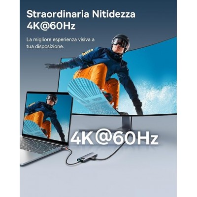 【Ultra nitido 4K@60Hz】La porta HDMI supporta una nitidezza massima di 4K@60Hz per la trasmissione su schermo con modalità estensione e specchio, ed è compatibile con 1080P@120Hz per un'elevata frequenza di refresh, per un'esperienza visiva senza precedenti