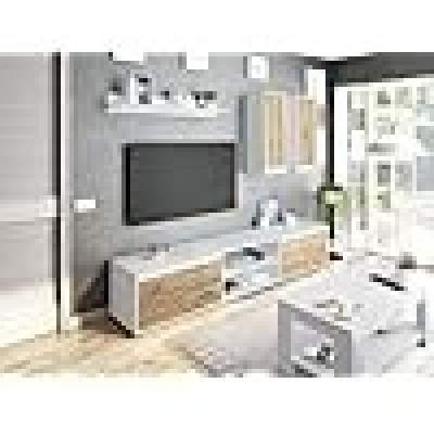 • STRUTTURA E UTILIZZO - Mobile TV per salotto composto da una base porta televisione a quattro ante battenti e due ripiani a vista centrali, due moduli sospesi e una mensola - La scelta dei vari mobili che compongono questa composizione da salotto rende il design di questo articolo d'arredamento moderno, funzionale e salvaspazio - Oltre al posizionamento della TV potrete personalizzare il ripiano e la mensola con i vostri soprammobili preferiti che rimarranno in esposizione sugli scaffali - Lo spazio all'interno delle ante è perfetto per riporre i vostri libri, documenti, oggetti decorativi o stoviglie in modo ordinato e discreto