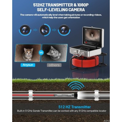 Anysun VideoSpection para tuberías, endoscopio con autosevaluación y transmisor 512 Hz, cámara